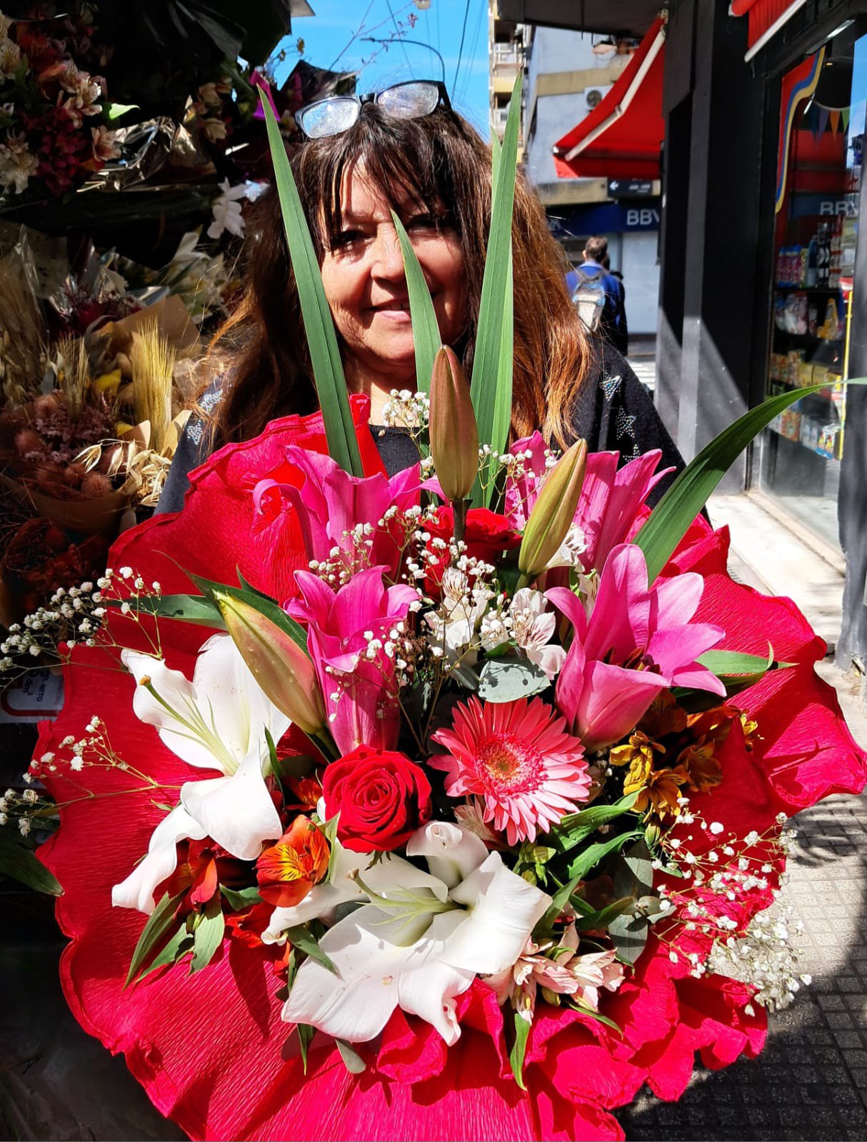 Ramo combinado de liliums, rosas, gerberas, astromelias, y follaje